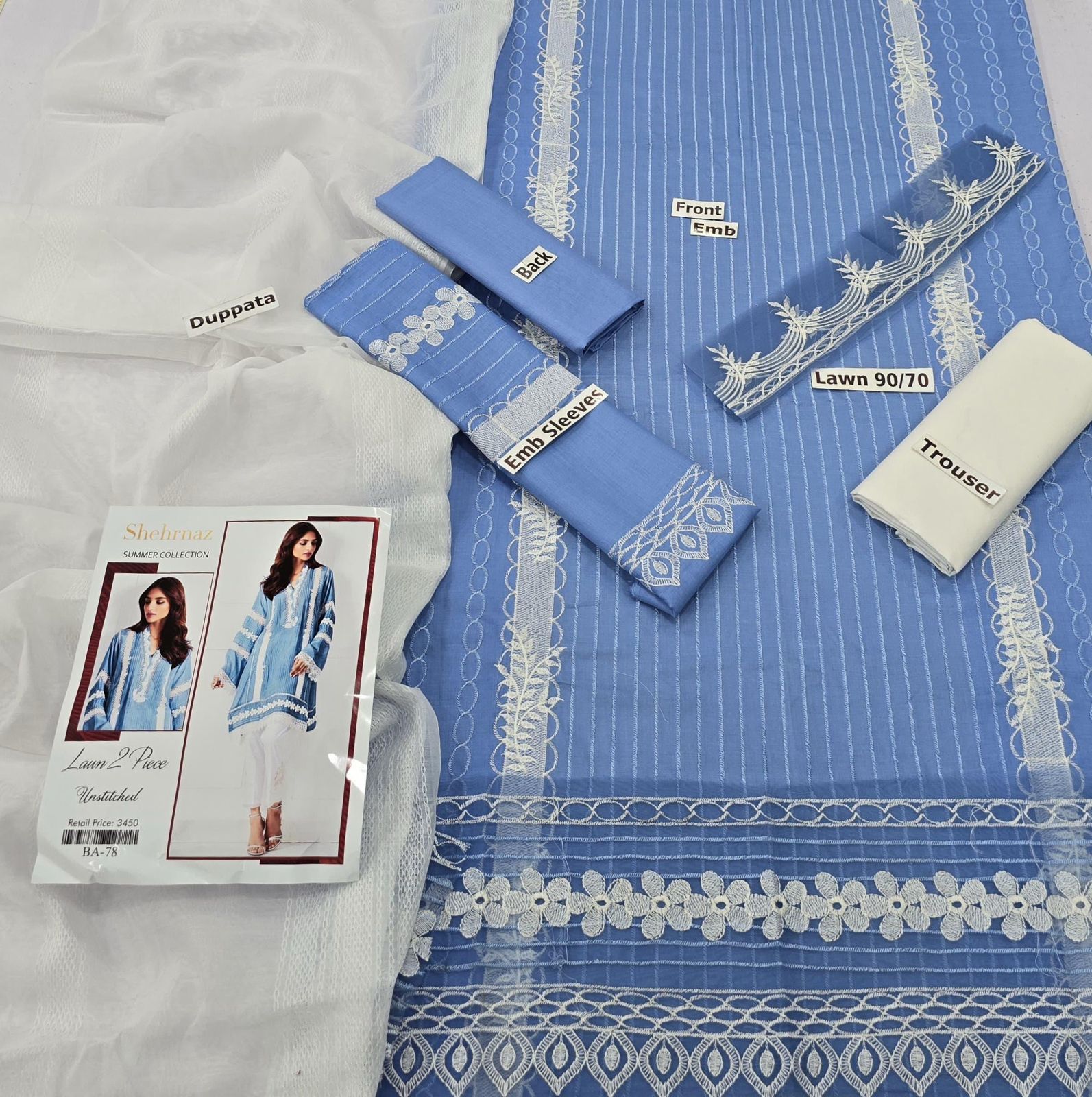 SHEHRNAZ | LAWN 3 PIECE FULL HEAVY EMB UNSTICHED SUIT FOR SUMMER 2025